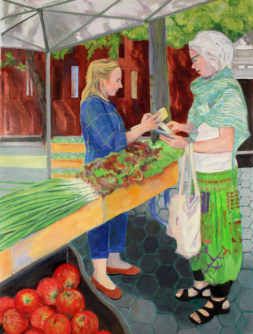 Farmer’s Market, 2022, oil paint on canvas, 46” x 34”