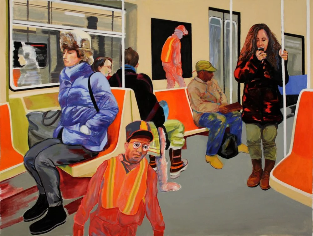 Subway Riders, 2013, charcoal on paper, 22" x 30"